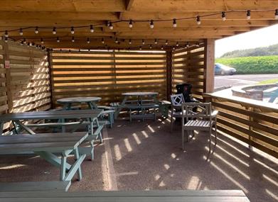 The chippy even has a large outdoor covered dining area for those times when the seaside holiday weather turns…typically British.