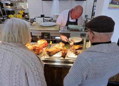 The cafe's lunch menu includes favourite dishes such as a cider applewood smoked pulled pork bap with house BBQ sauce and pickles, homemade spiced sweet potato falafel and hummus with a fresh salad, house salad bowls, plus classic dishes such as honey roasted ham, egg and chunky chips, mac n cheese and toasted paninis.