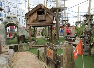 Can you putt your way around this theme-filled18-hole Adventure Golf course - but beware of the piranhas in the lagoon.