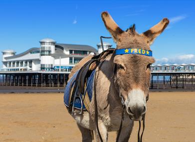 Weston-super-Mare beach has many traditional seaside activities to offer: donkey rides, children's rides, the Grand Pier, several eateries including The Bay Cafe, located at the former iconic Tropicana Lido, which was home to Banksy's Dismaland exhibition during the summer of 2015.