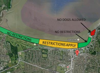There are no restrictions for dog walking on Weston-super-Mare beach in the following areas;