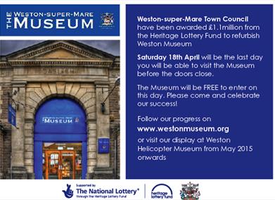 Weston-Super-Mare Town Council have been awarded £1.1million from the Heritage Lottery Fund to refurbish the Museum.Saturday 18th April will be the last day you will be able to visit the Museum before it closes.