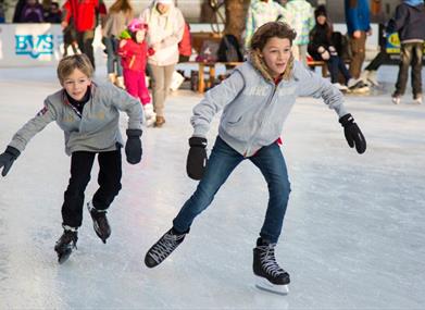 There is no minimum age but children under eight must have an adult ticket holder skating with them on the ice. And children under 12 must have a responsible adult watching on from the spectating area. There is no entrance fee to spectate. There is a viewing platform at the end of the ice rink for spectators.