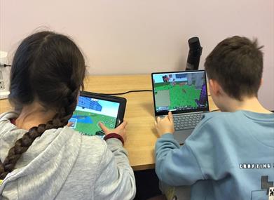 Your child will use Minecraft Education.They'll pick up new coding skills and put them to work in their very own Minecraft worlds — designing, building, and problem-solving through fun activities and challenges. It's hands-on, imaginative, and the perfect way to learn through play!