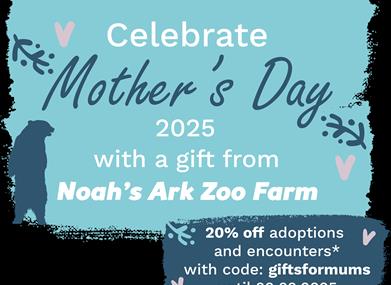 From 10th to 30th, Noah's Ark Zoo Farm are offering 20% off all animal adoptions and encounters – the perfect way to make this Mother's Day one to remember.