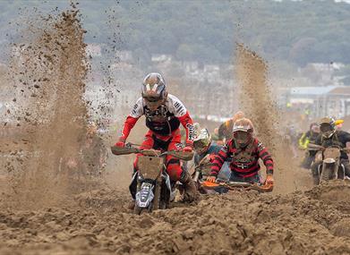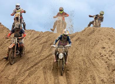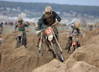 Thrills, falls and drama are guaranteed as hundreds of daredevil bikers from Britain and beyond race around the beach and over a variety of tough and specially-crafted sand dunes in a motorbike spectacular where amateur riders go head-to-head with the professionals.