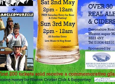 Organised by Weston Cricket Club this is a new beer festival for 2015.Running over the first Bank Holiday in May there will be beer, cider, bands and some tasty food.