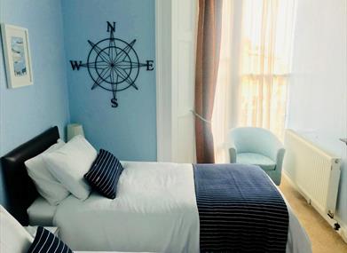 The bedrooms are all different sizes, due to the nature of the original Victorian house, but all offer the same facilities. There’s one large room with a side sea view that is the Superior Kingsized Bedroom, here you have the additional comfort of slippers and dressing gowns.