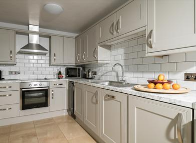 Each cottage has full central heating throughout. The kitchens are fully equipped with a dishwasher, washer/dryer, fridge/freezer, electric oven/hob and microwave. The lounges/dining areas have leather suites, wide screen TV with FreeSat, Midi HiFi, DVD, a sound system and wifi. The bathrooms have a "P" bath/shower, shaver point, toilet, hand basin and heated towel rail. Directly outside the properties is a large patio area equipped with individual outdoor furniture. The large, communal and enclosed gardens and children's activity play area are located across the courtyard.